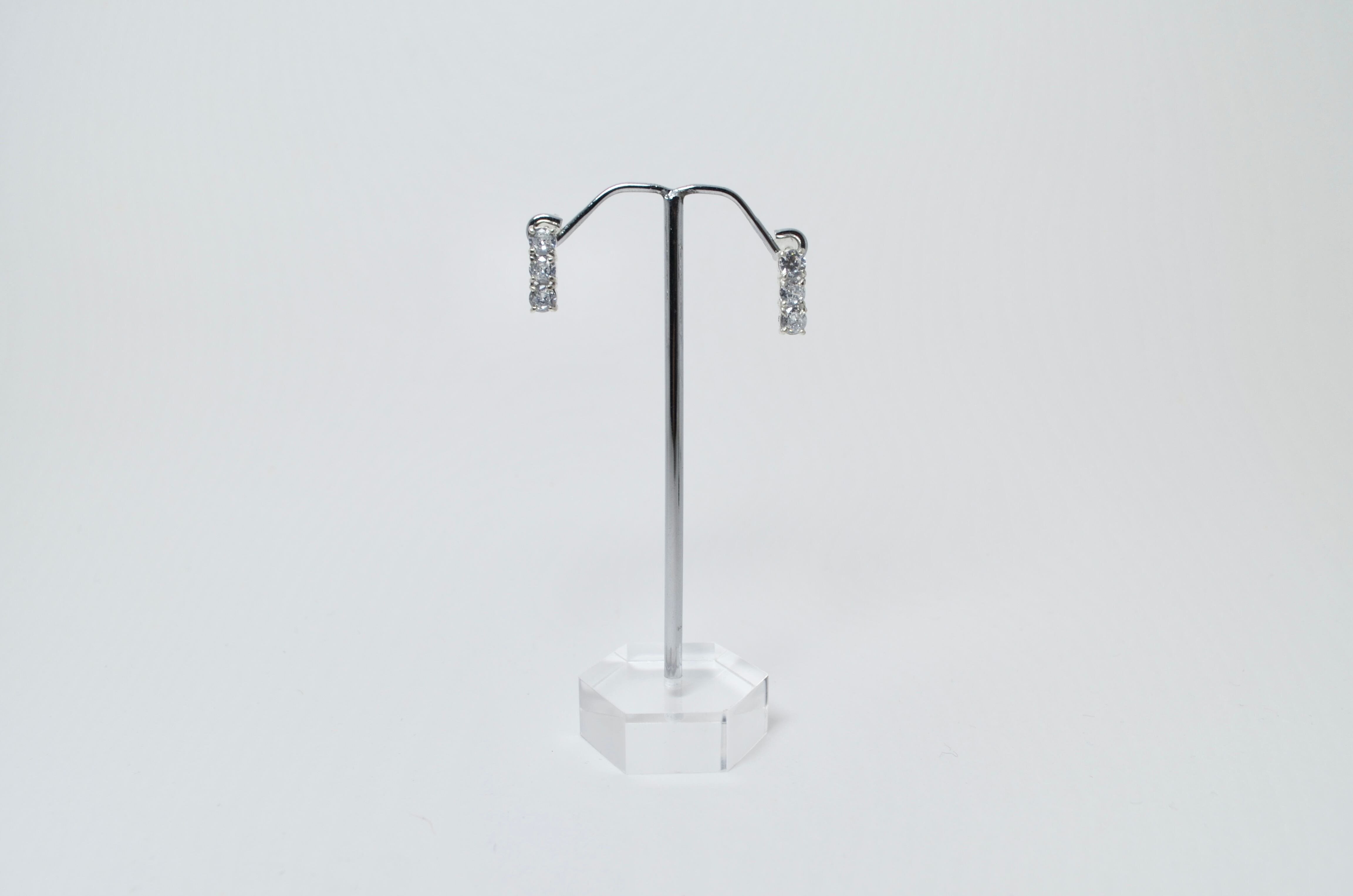 3つの石を三連にして4本爪で留めたピアス。